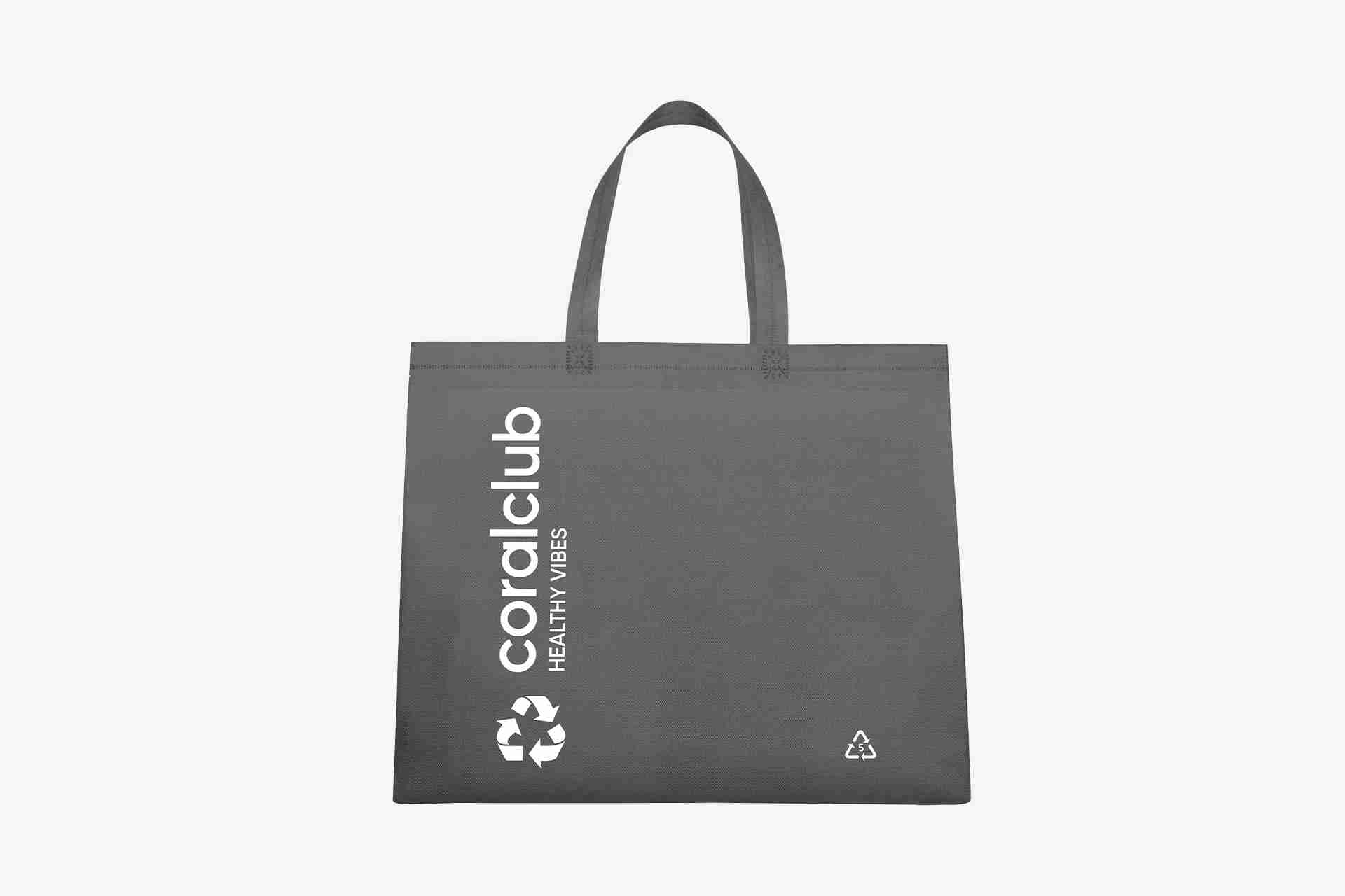 Sturdy reusable spunbond bag with long handles.